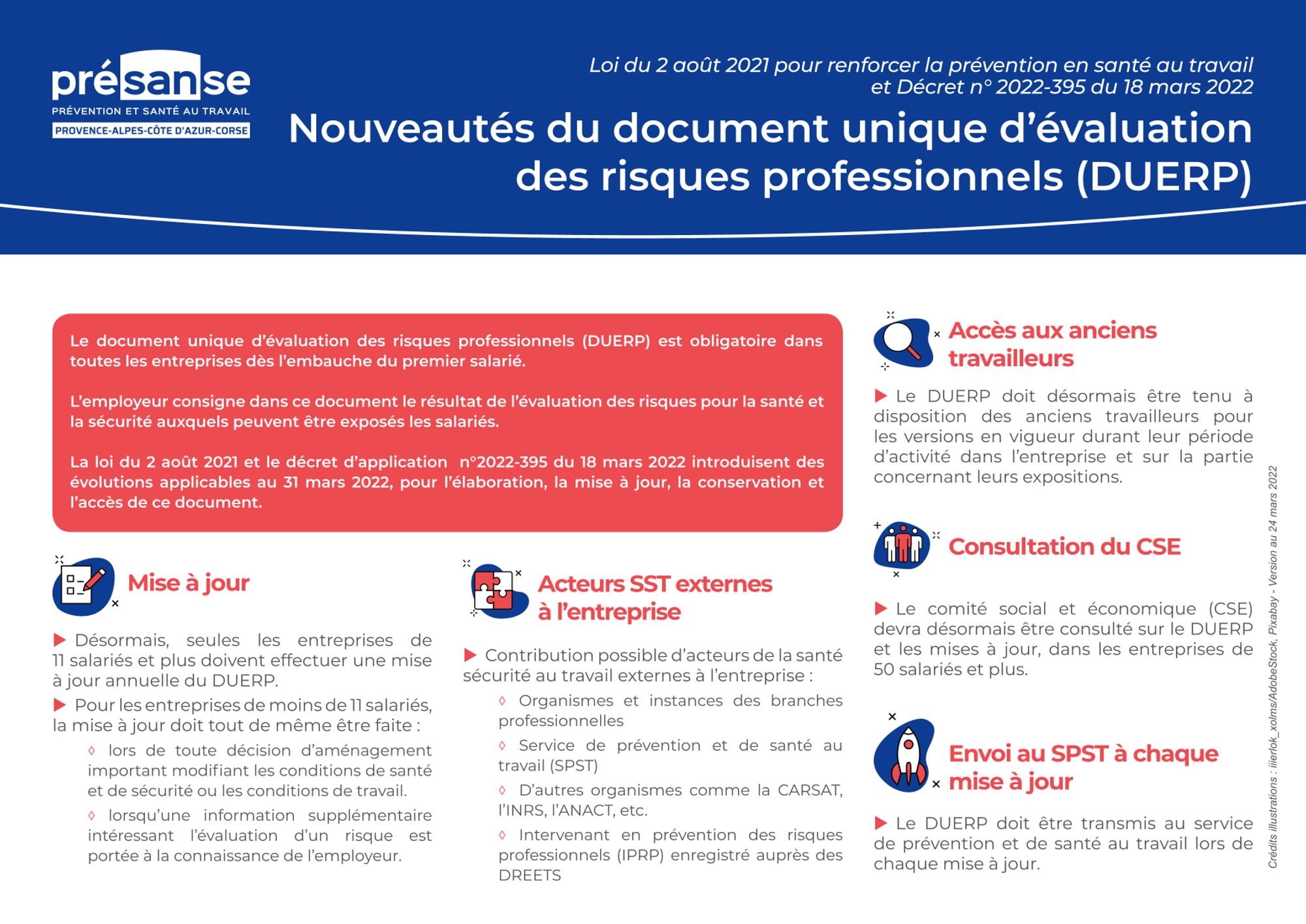 Le document unique d'évaluation des risques professionnels (DUERP) est une obligation pour toutes les entreprises depuis 2001 dès l'embauche du premier salarié (décret 2001-1016 du 5.11.2001).